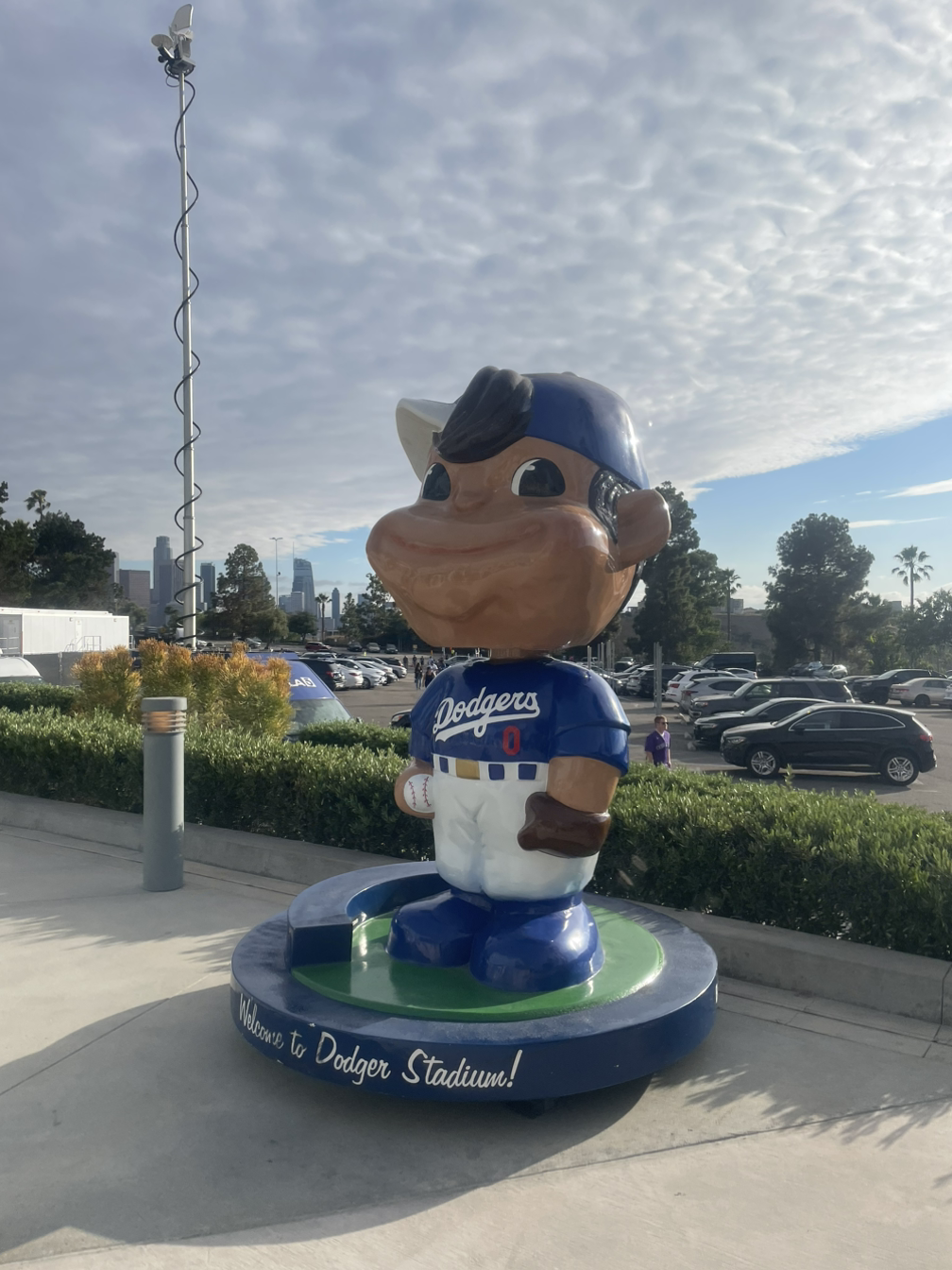 동생이 모든 가방을 보관함에 넣으러 간 사이 입장을 했는데 그날 입장객들에게 버블헤드 인형도 하나씩 주었다. 사람당 하나씩 줘서 9인 우리 가족은 9개의 버블헤드 인형을 주렁주렁 들고 갔다. 자리는 중간쯤 위치해서 좋았다. 야구에 문외한인 나는 별 감흥이 없었는데 그날 LA 다저스 선발투수가 커쇼라니 안 그래도 흥분했던 우리 남편은 거의 울지경에 이르렀다. 어디 가서 먼저 사진 찍어달라고 말하는 사람이 아닌데 계속 포즈를 취해서 사진 찍느라 바빴다.