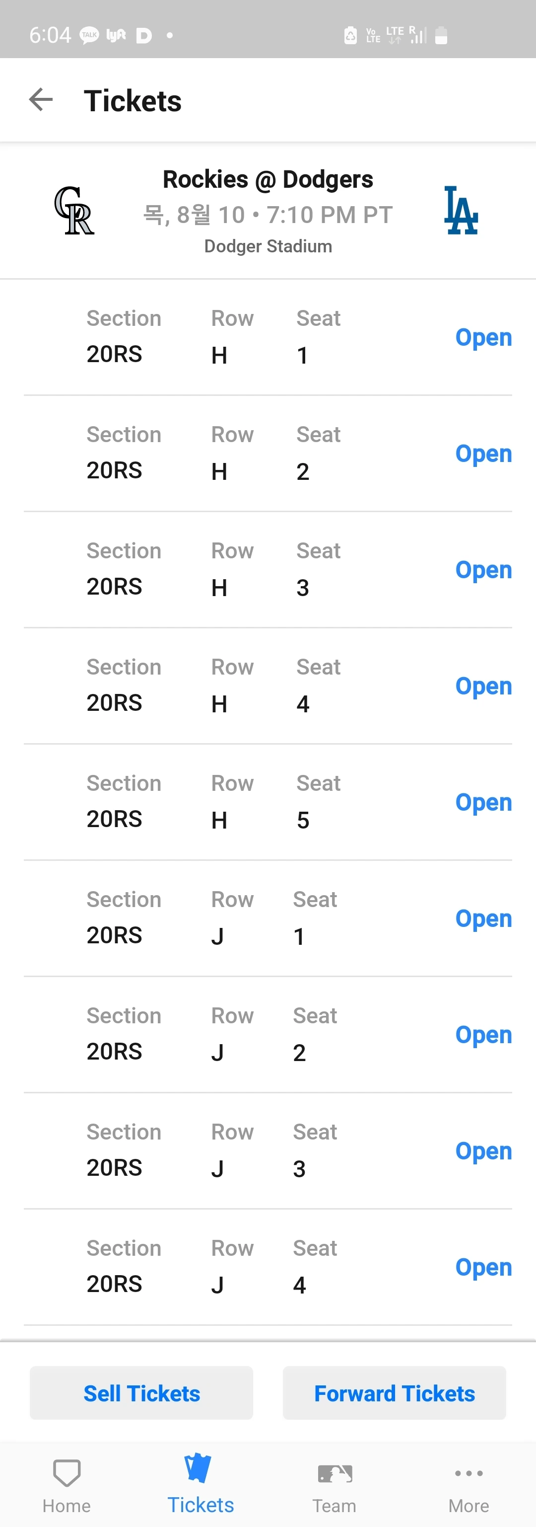 마지막 우리가 갈 곳은 LA다저스와 콜로라도 야구 경기를 보러 다저스 홈경기장에 갈 계획이었다. 야구장에서 먹자며 과자를 주렁주렁 들고 갔는데 입구에서 멘붕이 왔다.