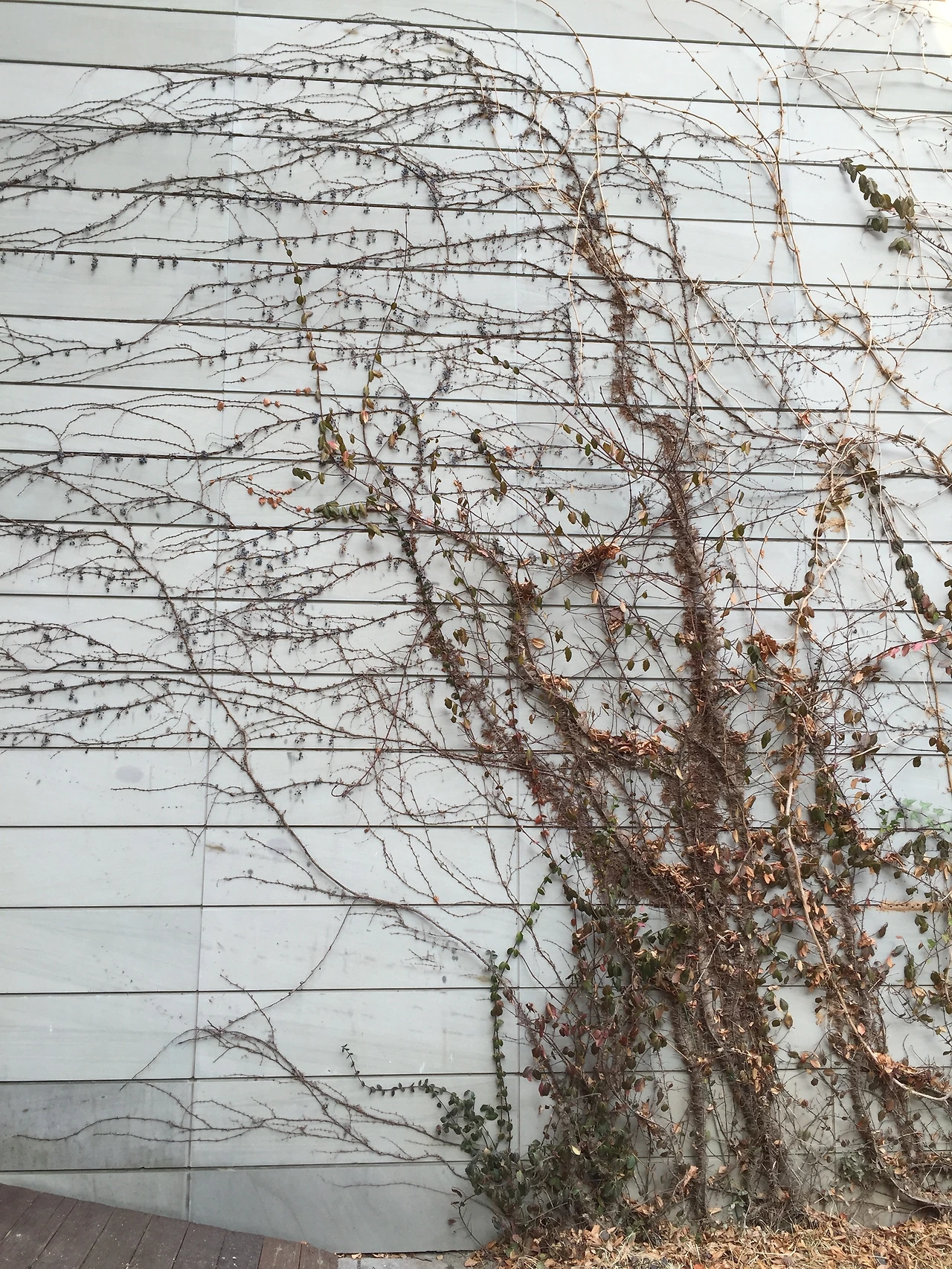 겨울이 되면 유난히 시선을 잡는 게 있다. 누가 그렸을까? 담벼락에 그려놓은 낙서치고는 너무나 수준 높은 그림이다. 멀리 굽이치는 산줄기에 기암절벽이 있고, 쏟아져 내려오는 폭포와 휘돌아나가는 강이 흐르고, 넓게 펼쳐지는 들판도 있다. 담을 뒤덮었던 잎들이 다 떨어지자 선명하게 드러나는 담쟁이덩굴의 줄기들이 기어간 역사가 그림이 되었다. 한 폭의 산수화 같은 느낌으로 다가오는 담쟁이덩굴이 빚어낸 담벼락 그림.