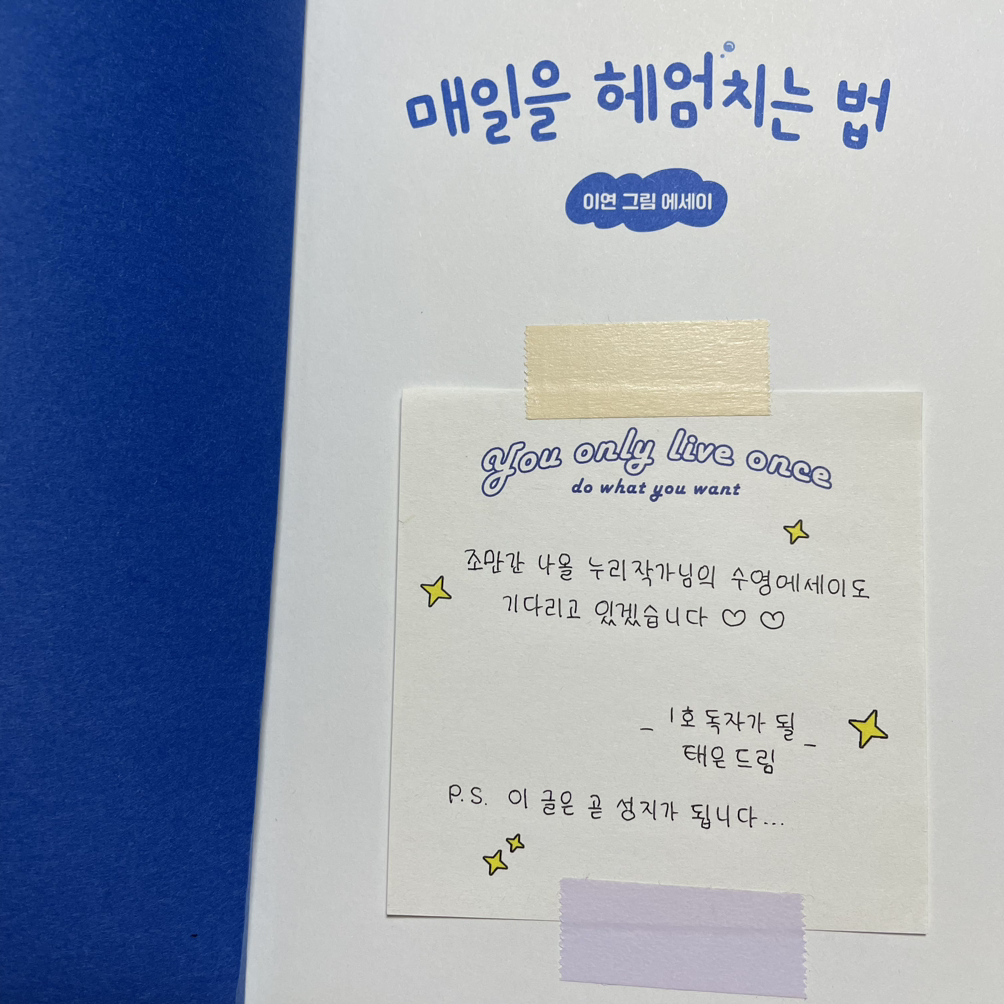 아무튼, 시리즈를 좋아하는데 아직 <아무튼, 수영>은 없다. 매번 서점 갈 때마다 찾아본다. 여전히 검색결과에 나오지 않는 책을 생각하면 ‘혹시 내가 쓰게 되는 거 아니야?’ 하고 거침없이 큰 꿈을 꿔본다.