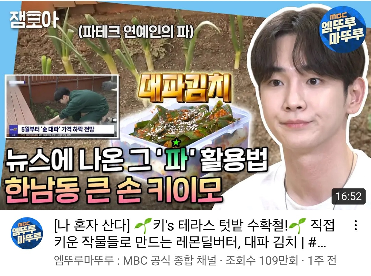 정확히는 지난 3월 ‘나혼자 산다’ 방송 중, 집에 있는 미니 텃밭에서 파와 허브를 키우는 모습이었다. 나혼산을 아침 뉴스에 나오게 한 장본인, 키는 <나혼자산다>에서 아주 트렌디한 혼자 라이프를 보여주는 중이다. 텃밭에는 직접 키워 먹는 대파와 허브가 있고, 집 구조로는 <구해줘 홈즈>에 집만 나와도 주목받을 법한 ‘방 안에 방 안에 방’이 있었다.