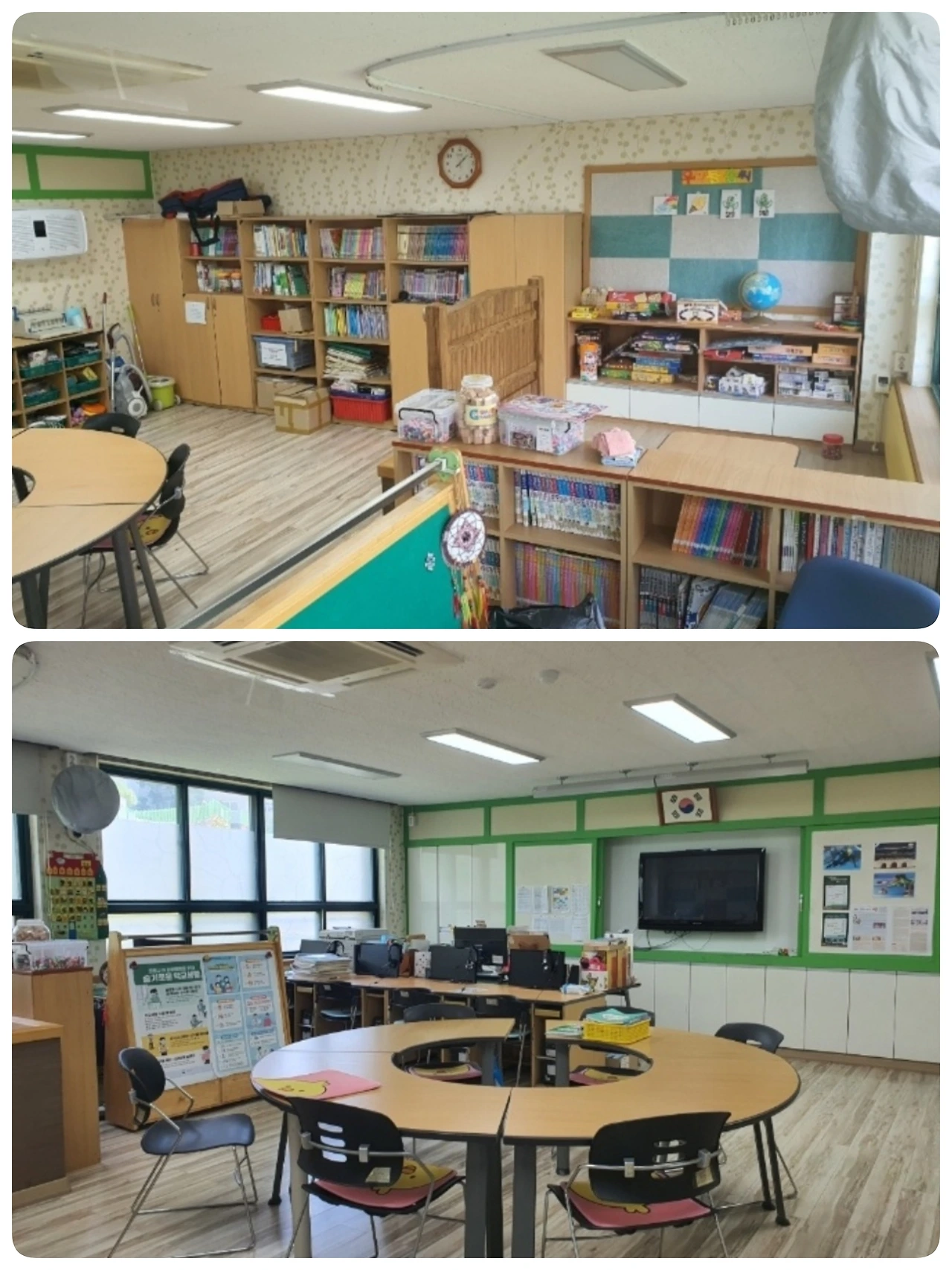 활동 공간이 너무 좁아서, 큰 타원 책상을 피해 다니다 보면 곧잘 골반뼈를 부딪히기 일쑤였다. 그 외에도 보조인력이 없이 지낸 지 5년은 된 거로 아는데.. 보조인력은 책상과 폐기할 물품들이 한자리 가득 차있었다. 좌식 공간도 한몫해서 교실 1/3은 거의 사용이 어려웠다. 지금 재학 중인 중학생들도 체격이 워낙 크기도 하고(운동 잘하는 중3은 180이 넘고, 중2 남학생과 중1 남학생은 꿇거나 좌식 앉는걸 불편해했다.) 사용빈도가 덜해지는 공간이 아깝기도 했었다.