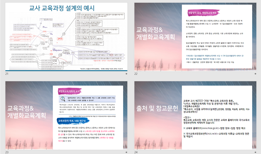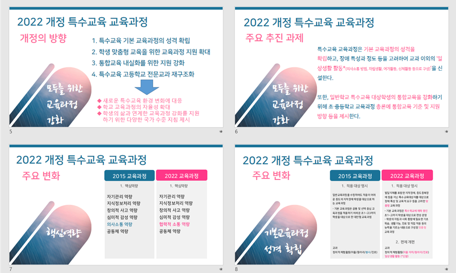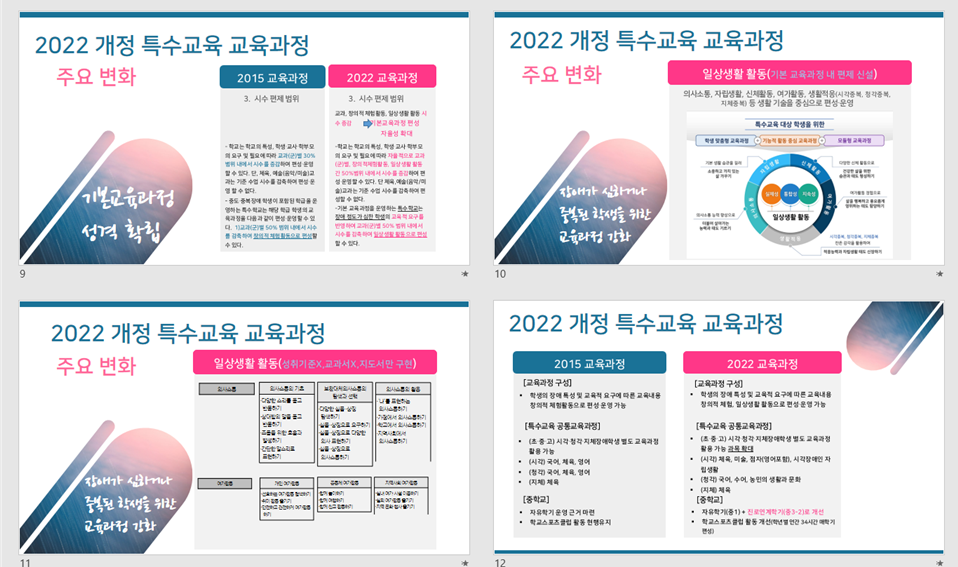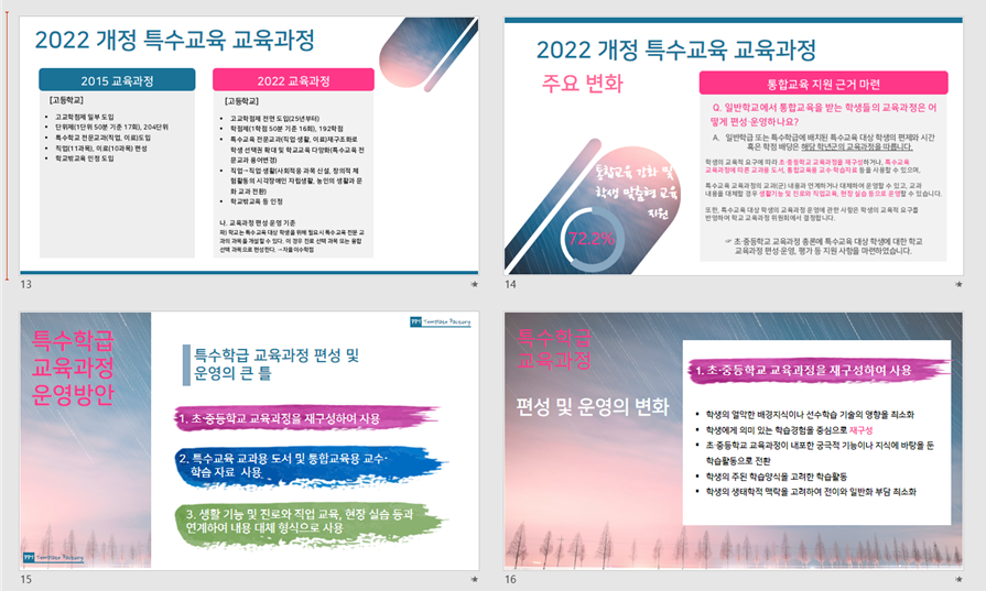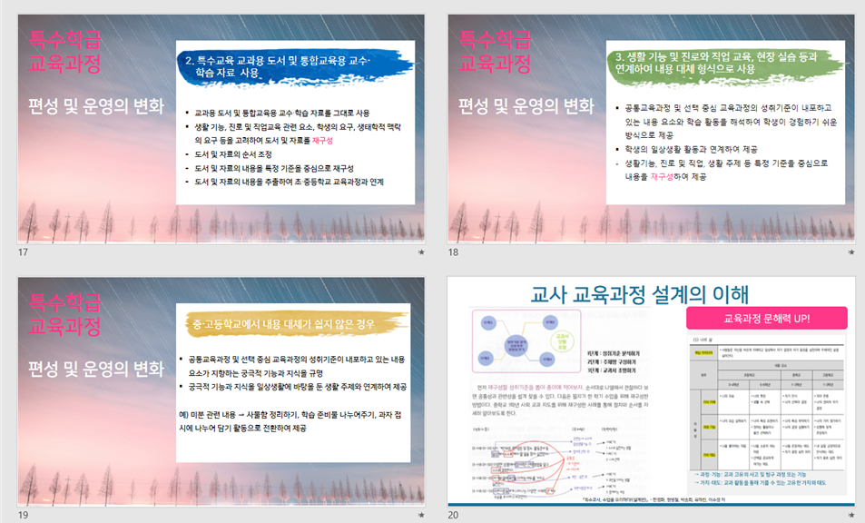 나름 연수과정 충실히 공부하고, 특수학급 선생님들께 전반적인 내용들 안내드린다고 만든 연수 자료입니다.