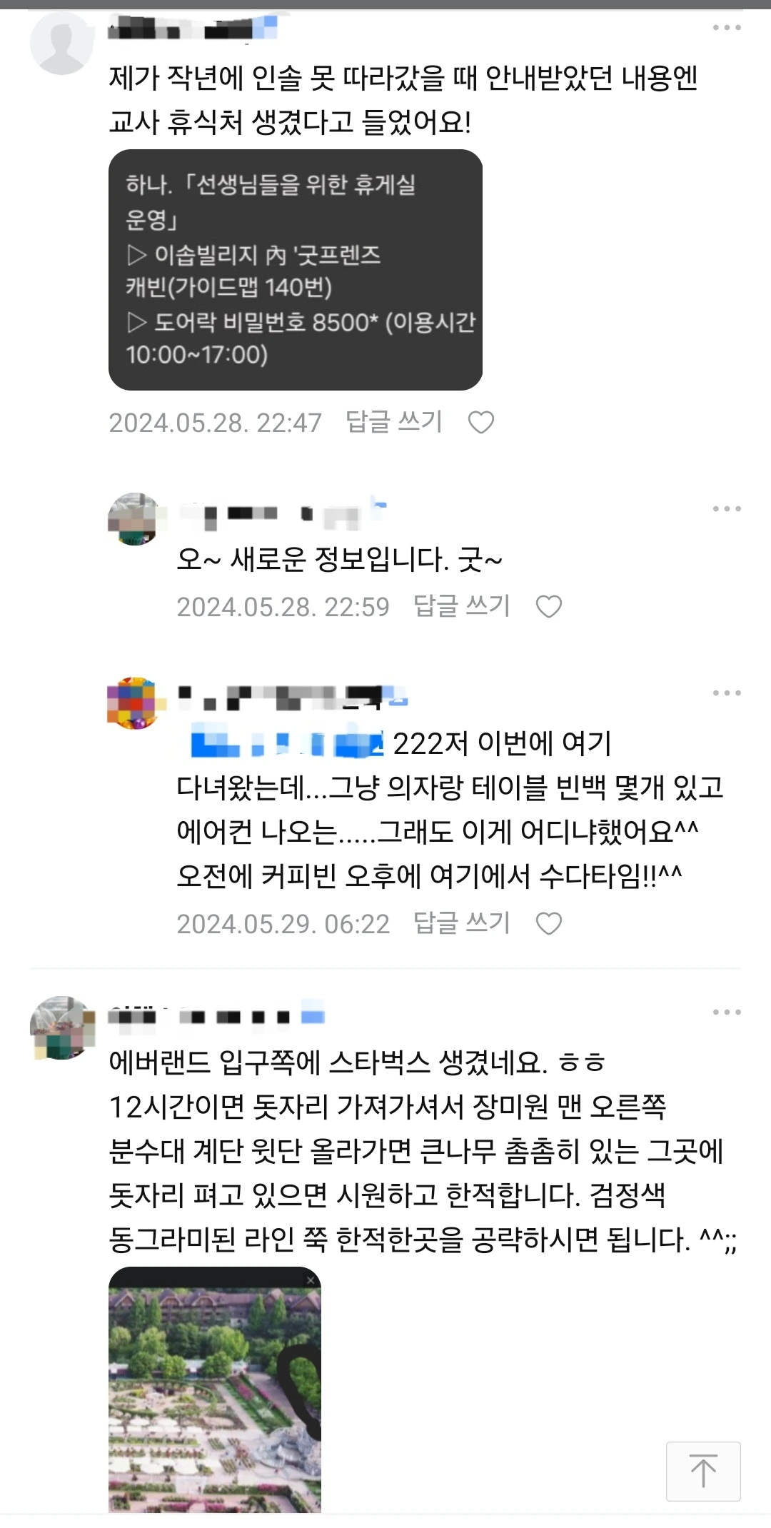 * 일교차가 위쪽지방은 더 심하니 얇은 겉옷 준비해요. (가벼운 작은 가방 있어야 에버랜드에서 겉옷, 물 넣고 다님)
