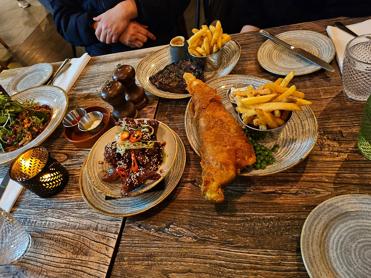 피쉬앤칩스, 코리안치킨, 스테이크칩스(30파운드이상), 샐러드 등 메뉴당20-30파운드, 메뉴4가지 119파운드