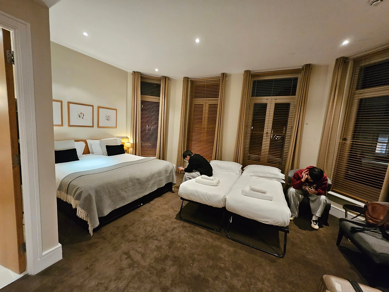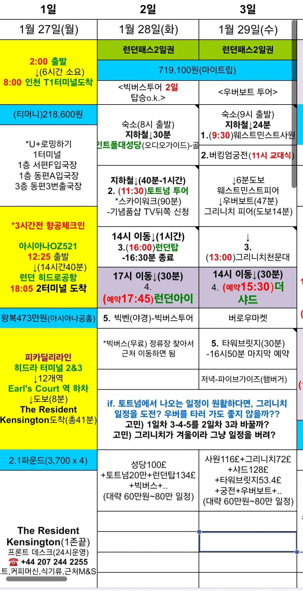 비가 추적추적 왔다갔다하니 해지면 롱패딩 입을 날씨에요. 런던은 코트 많이 입고 있어서 현지인들은 날씨에 적응해서 그런걸까요? 숙소 난방도 한국식 바닥 보일러가 아니라 저랑 남편 침대는 포켓패드 등만 길게 깔았고, 핫팩을 애들 이불에 넣었더니 따뜻했어요.