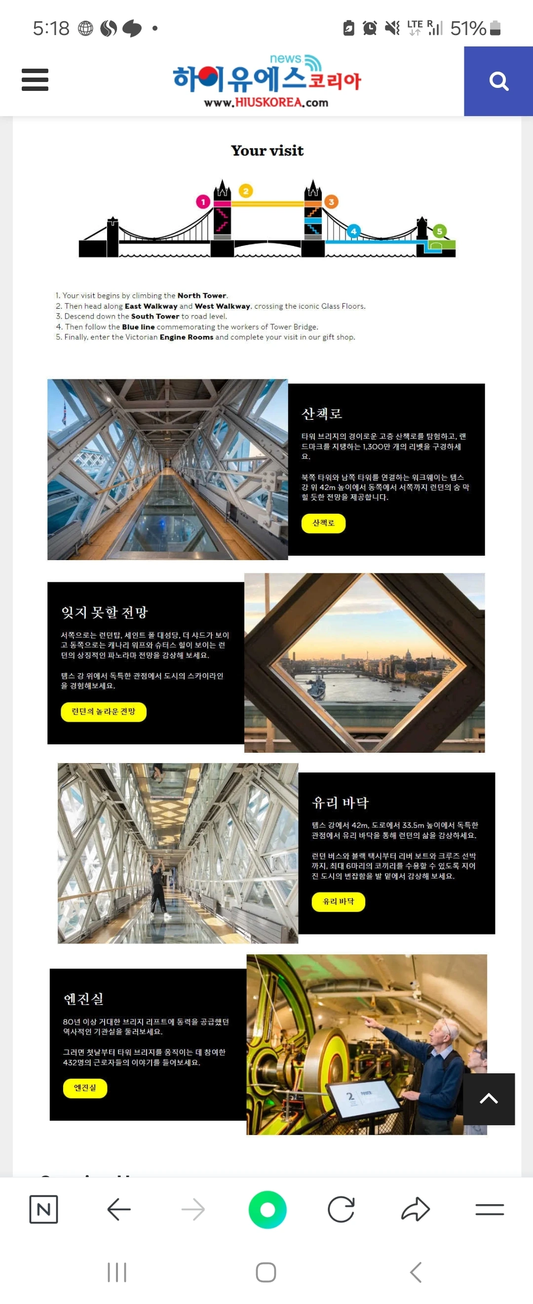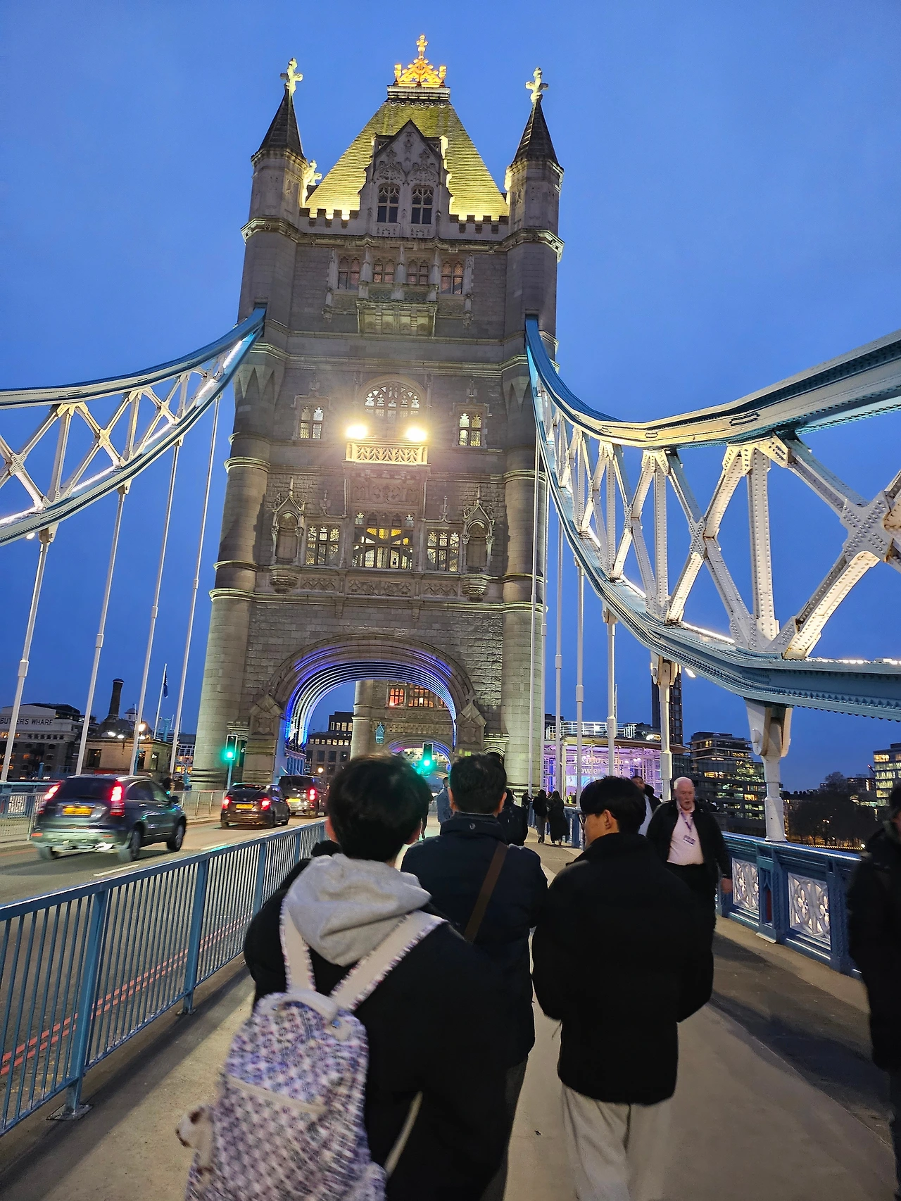 -타워브릿지 찾아서 런던타워를 둘러 걸어가는데.. 해 질 녘부턴 부쩍 추워지고, 그 전날 2만 보 걸었으면 오늘은 1만 보 정도부턴 다들 기력이 어제보다 못해서 힘들었어요. 타워브릿지 내부도 입장료 내고 관람할 수 있는데(한 사이트에 구조도 설명이 나와 있어서 첨부요. 색칠된쪽 관람되는듯), 17:00시 마지막 입장이라 아슬아슬 도착했어요. 굳이 관람되는지 끝까지 가보지 않고 입장 포기로 결정내렸어요. 야경 사진만 찍으면서 다리 반대편으로 건너가 저녁 먹고 싶다고 해서요.