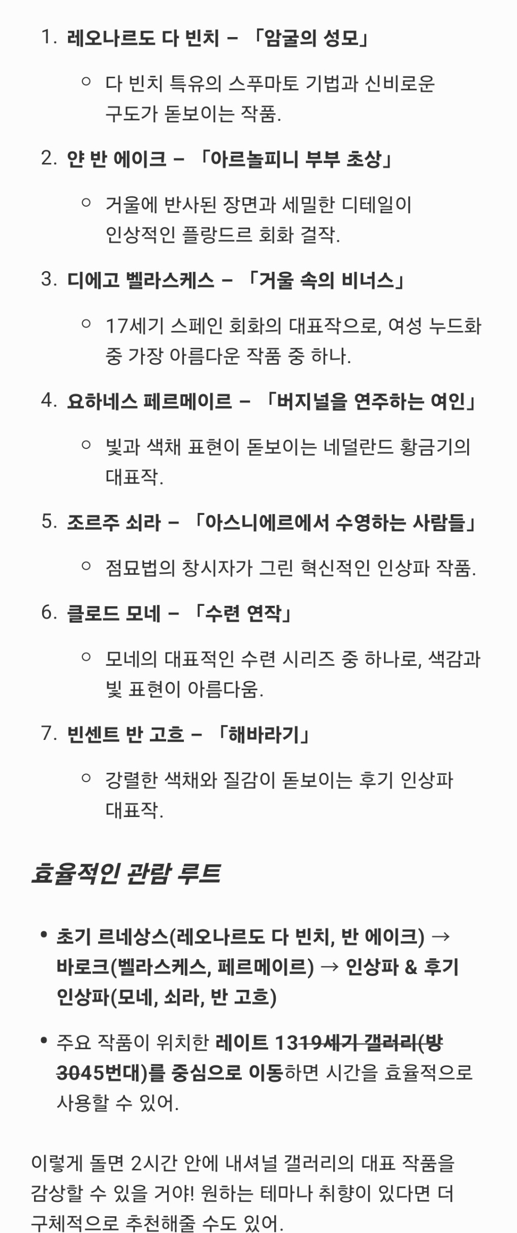 -가이드 투어를 신청하지 않아서, 챗gpt한테 물어봤어요. 이것만 우리 찾아보고 가자. 그 목표로 관람했어요. 저희가 찾으러 가는 그림 위주로 가이드들이 서서 설명하는 것 같아서 나름 투어 신청 안 하셨다면 이런 방법도 추천합니다.