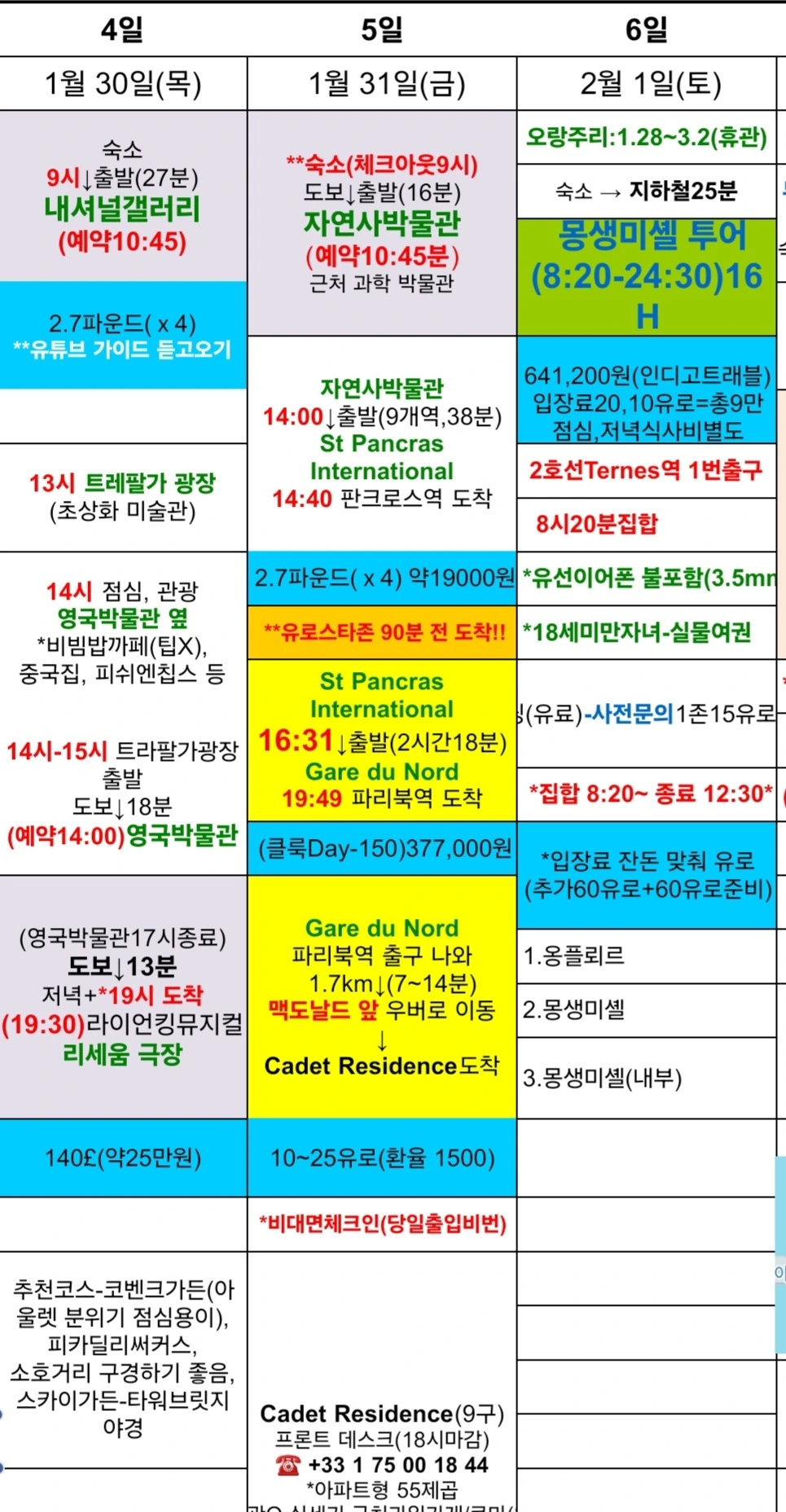 사전에 일정표랑 비교해보세요^^