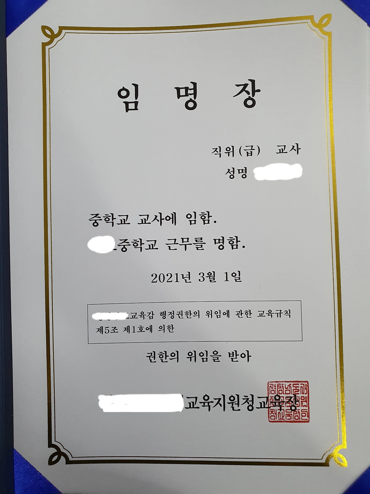 11월 첫 주. 고등학교 배치 확정 공문이 도착했다.