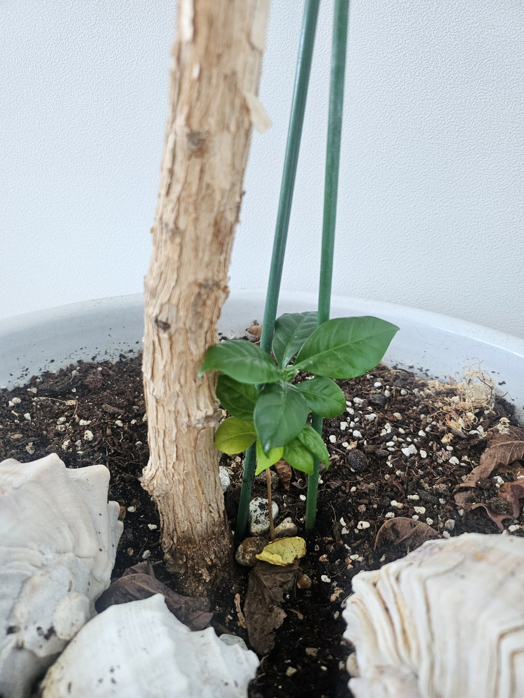 물을 주다 보니 커피나무 아래 귀여운 미니어처 마냥 초록초록 아기나무가 약 5센티미터 자라나고 있었다.