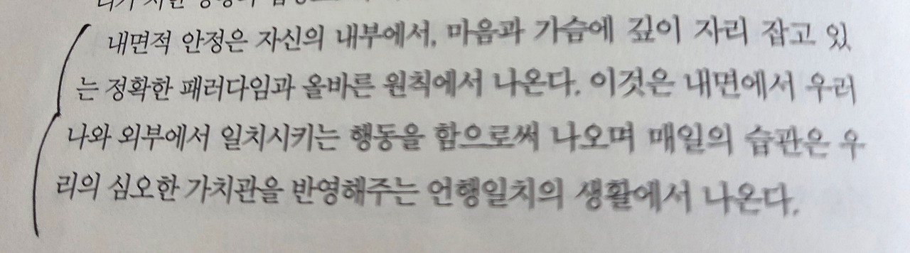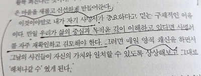 책을 읽으며 자기 확인서, 개인헌법을 작성하게 되었다. 자주 읽게 되고 확인하면서 일상에 생기와 활력을 불러일으키게 되어 감사하다.