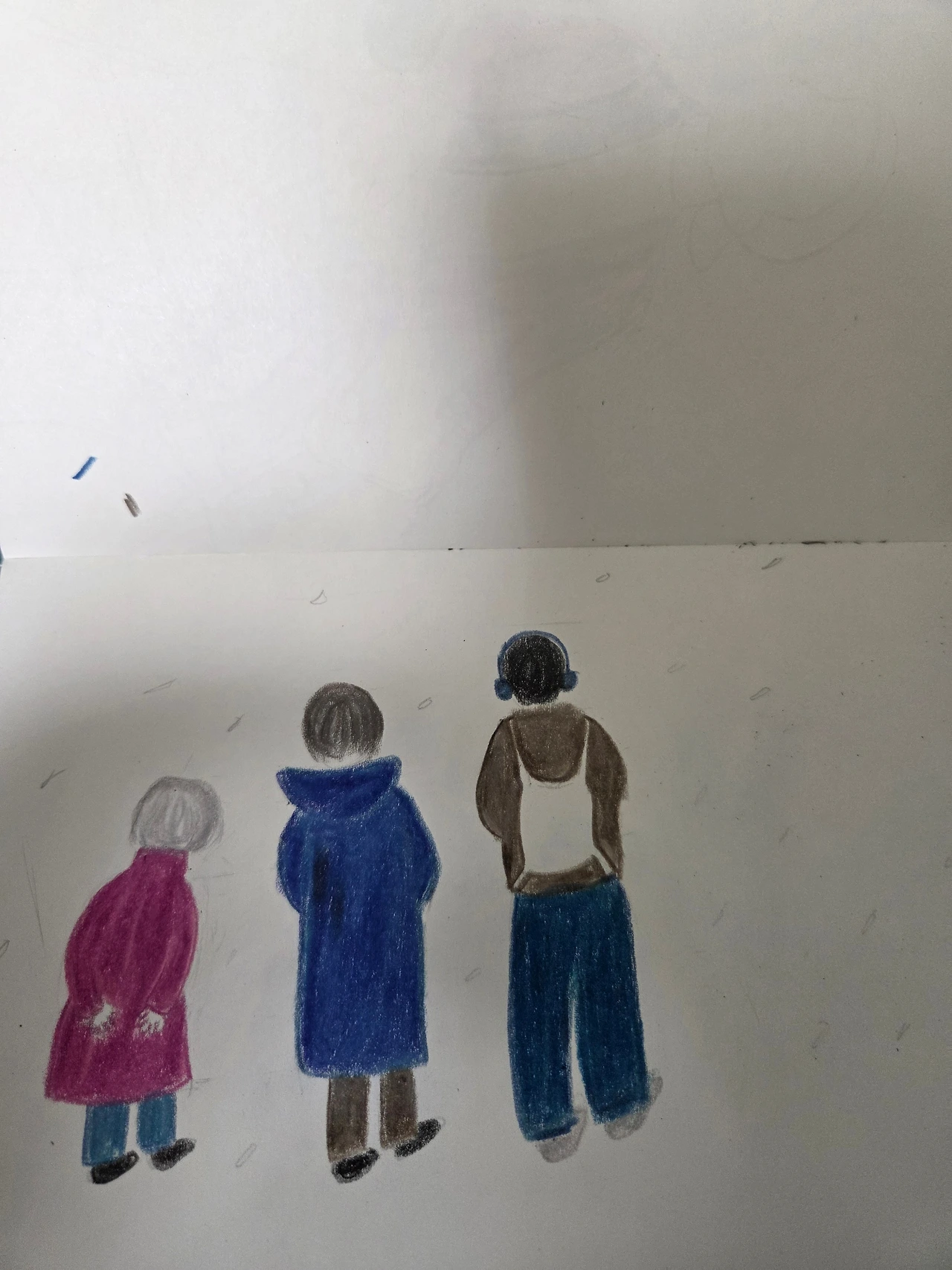 지하철역 입구, 백발의 노인이 자신보다 조금 젊은, 아들일 듯한 노인과 걷는 뒷모습을 보았다. 노인이 차려입은 선명한 붉은 코트는