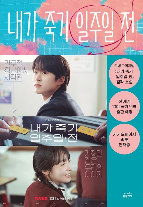 <내가 죽기 일주일 전>은 티빙 오리지널 드라마로 2025년 4월에 공개되었습니다. 티빙에서만 감상하실 수 있습니다.