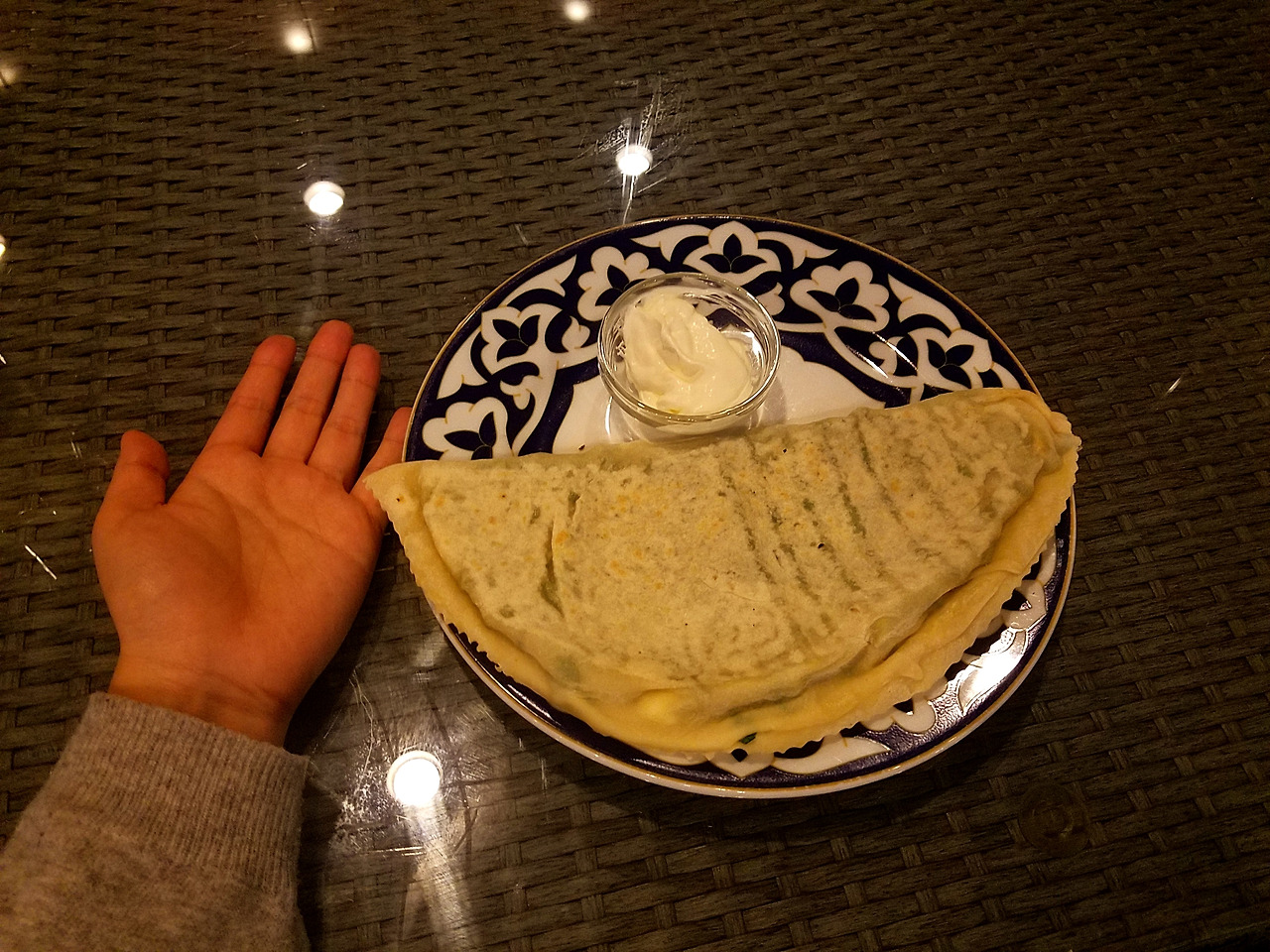 첫 번째 음식은 만두와 파전을 합친 음식으로 보면 될 것 같다. 생김새는 만두처럼 생겼지만 안에 들어가는 속재료는 고기 혹은 야채만 넣거나, 둘을 적절히 섞을 수 있기 때문에 취향대로 선택하면 된다. 포크와 나이프를 사용하여 적당한 크기로 자른 후 함께 나온 사워크림에 찍어 먹으면 되는데 그런대로 맛이 좋았다.