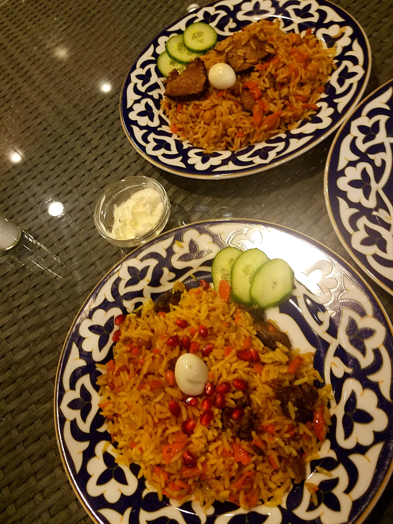두 번째 음식은 일단 볶음밥이라고 적혀있기에 정체 모를 메뉴들 사이에서 반가운 마음에 시킨 음식이다. 눈썰미가 좋은 분들은 사진을 통해 이미 보셨을 수도 있는데, 볶음밥에 석류 열매가 들어있다. 처음에는 석류가 들어있기에 굉장히 당황하였지만, 먹어보니 새콤달콤한 것이 나쁘지 않은 맛이었다.
