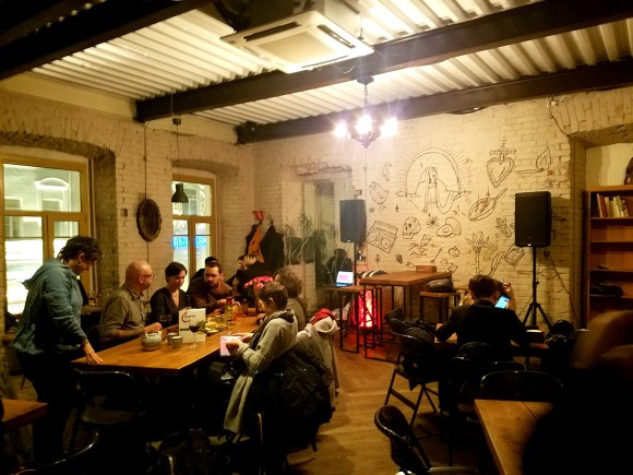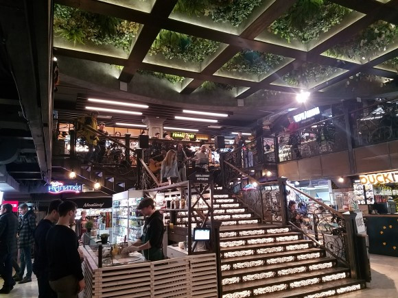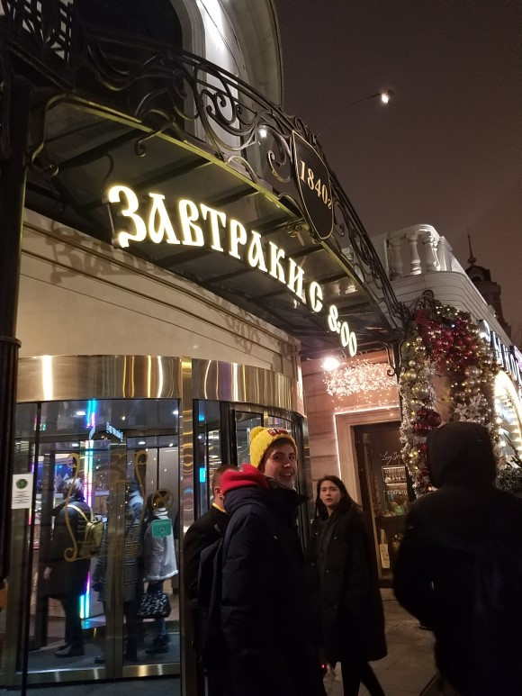 러시아에서의 첫 번째 날, 당연히 포기는 없었다. 안나를 동반하고 다시금 저녁을 먹었던 '마켓 플레이스'로 돌아갔다. 하지만 우리가 한 가지 간과한 것이 있었으니, 바로 저녁 먹을 당시만 해도 일부 웨이팅을 했다는 점이었다. 마켓 플레이스 또한 사람들이 가득 차있었으며, 설상가상으로 이번에는 웨이팅을 해도 쉽사리 자리가 나지 않을 것 같아 마냥 기다릴 수는 없었다. 세 번째 연속 실패였다. 러시아 친구 세 명이 머리를 열심히 굴리더니 근처에 있는 가게 하나를 떠올린 듯했다. 거기는 밤늦게까지 운영하고, 자리도 많으니 아마 성공할 수 있을 것이라고 하였다. 처음부터 갔으면 좋았겠지만, 좋은 장소를 소개해주기 위해 노력한 친구들에게 굳이 불필요한 말은 하지 않았다.