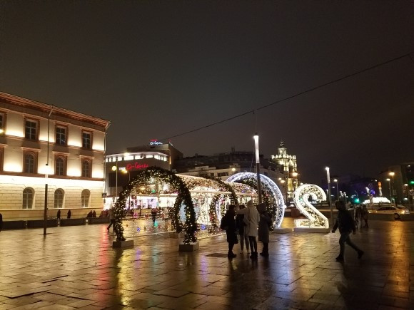 이후 이동은 확실하게 안나가 통과될 수 있는 증명된 장소로 향했다. 확실한지 어떻게 아느냐고 물으신다면, 해당 장소는 이미 안나가 가봤던 곳이기 때문에 걱정할 것 하나 없다고 했다. 장소 변경을 위해 지금까지 왔던 길을 돌아서 다시 역으로 돌아간 다음, 안나를 처음 만났던 약속 장소로 다시 돌아갔다. 거기서부터 다시 걷기 시작했다. 러시아 여행을 떠나려고 한다면 많이 걸을 것을 염두하여 편하고 따뜻한 신발을 준비해두기를 바란다. 그럼에도 불구하고 밤 풍경 하나만큼은 정말이지 아름다웠다.