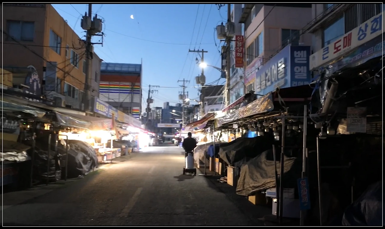 새벽 5시 50분. 고요한 거리 속, 우리는 시장을 향해 걸었다.