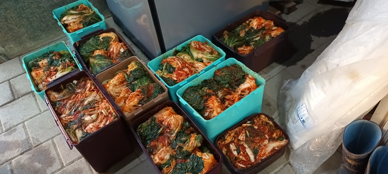 이 난리를 겪느라 미처 넣지 못한 배춧속을 우리는 마음을 뭉쳐 같이 넣고 통에 담아 베란다에 쌓았다. 다 끝내니 밤이 깊어져 있었다. 저녁식사가 밤참이 되어버린 식탁을 차리며 조용히 중얼거렸다. '에휴.. 당신도 나 데리고 사느라 고생이 많다'고.