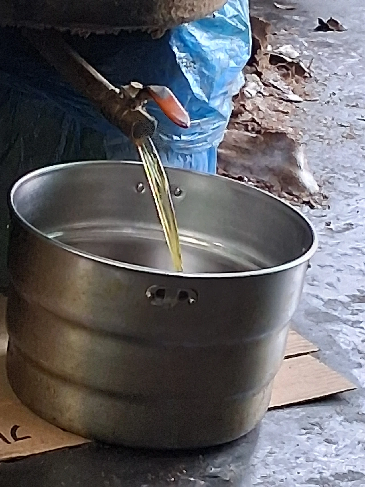 깨가 자동 솥에서 볶아지는 동안 사장님은 누군가가 맡기고 간 깨로 짠 기름을 큰 페트병에 담았다.