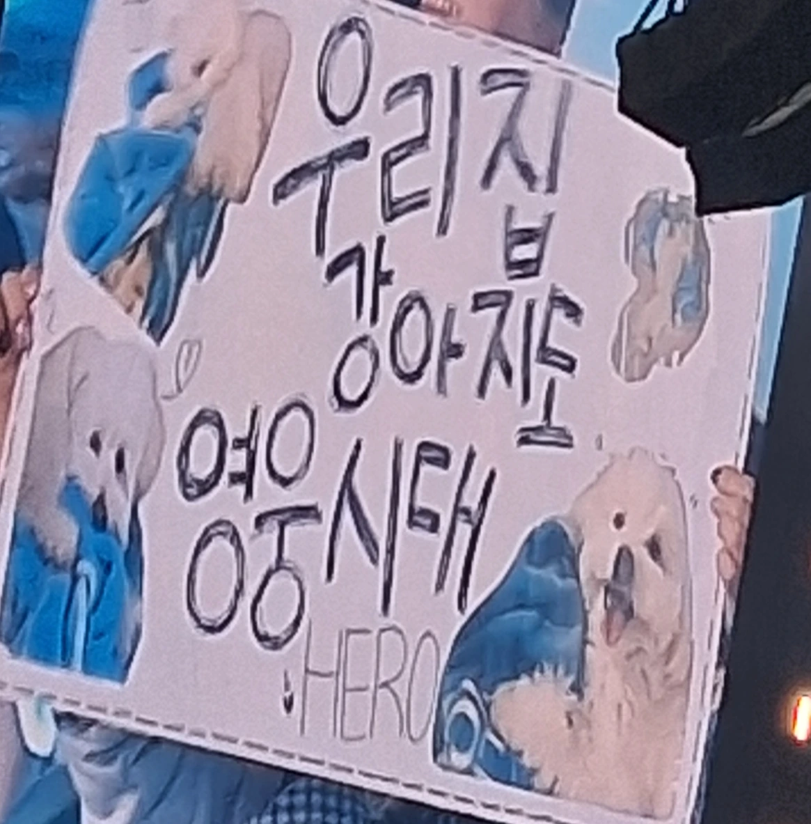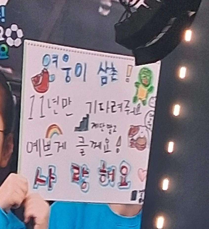 여기저기서 관객들이 들고 있는 스케치북 피켓이 화면에 잡혔다.