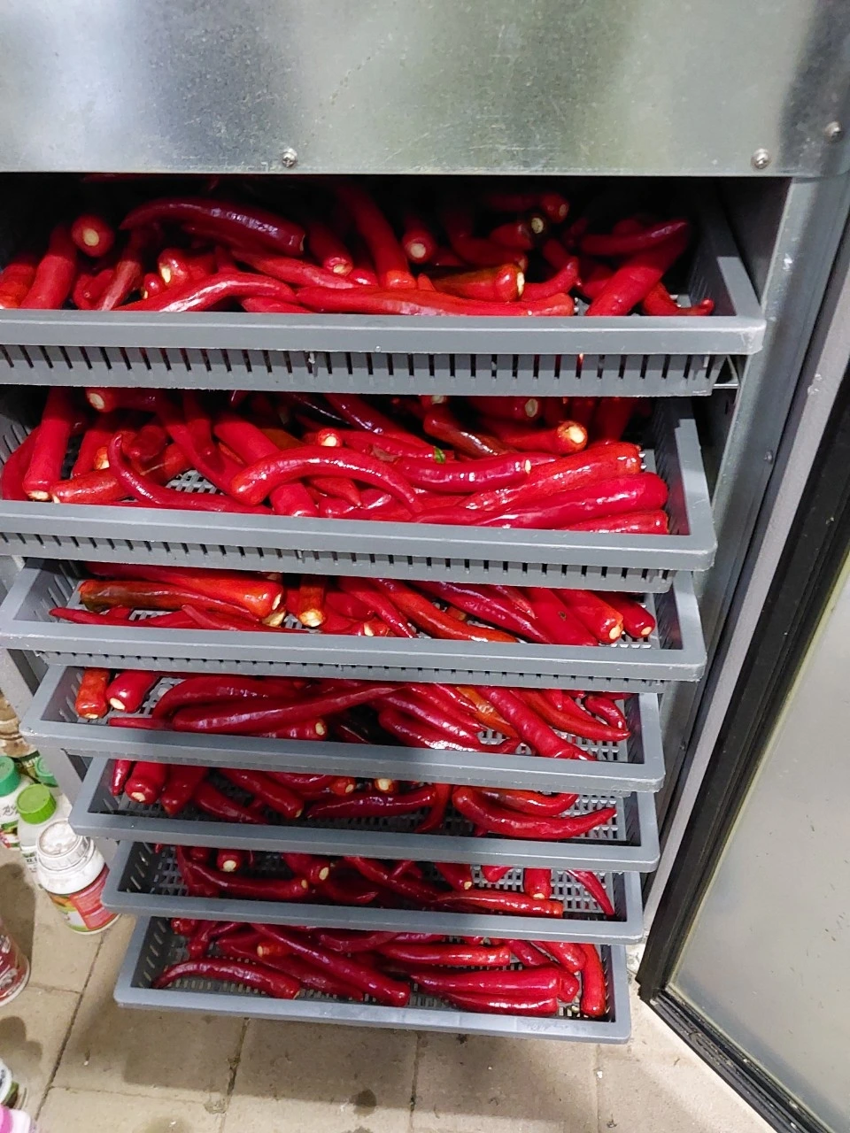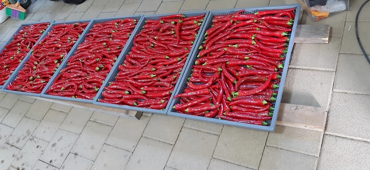 우리는 고추를 부지런히 땄고 씻었고 말렸다.