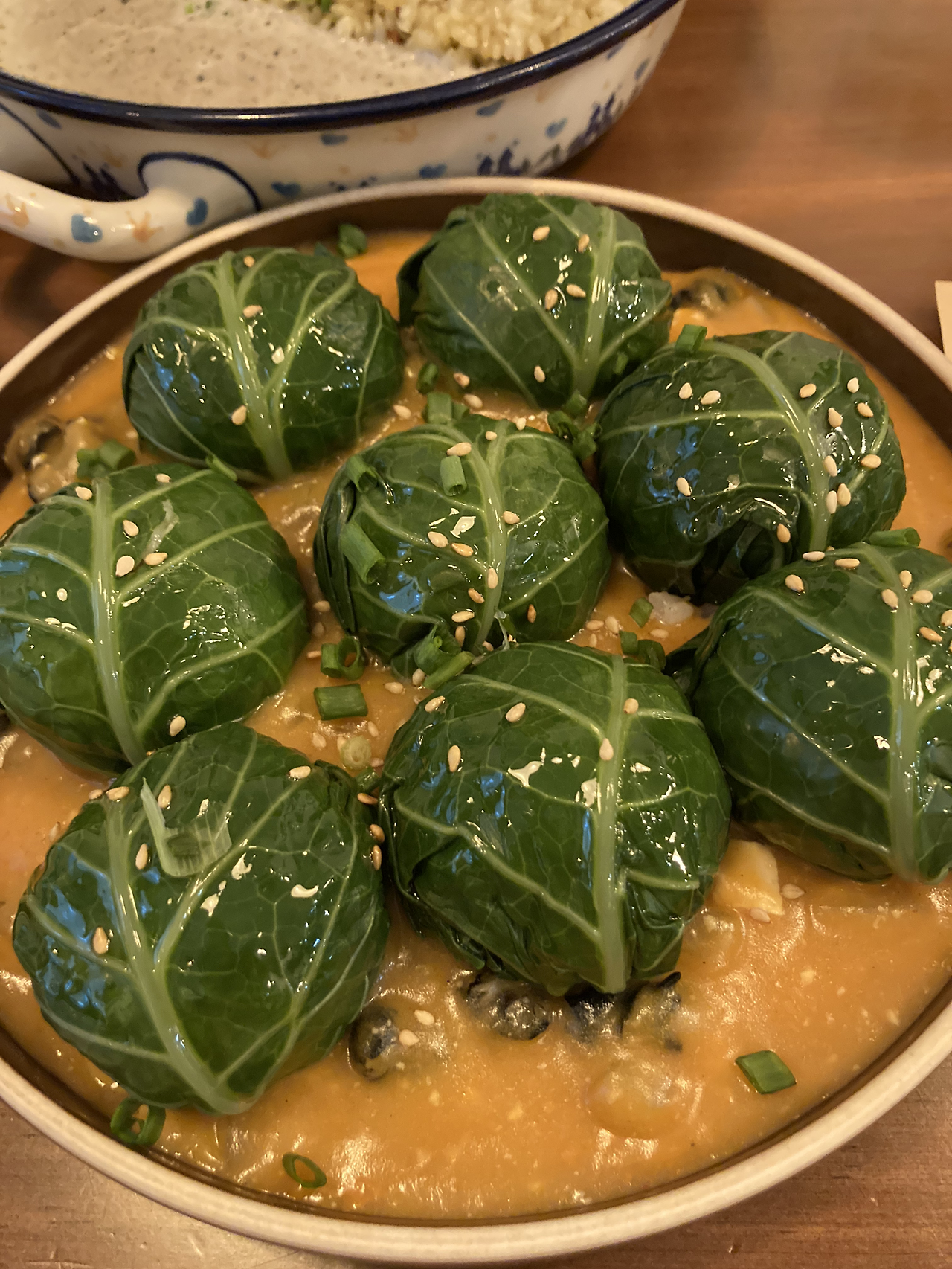 점차 감상적이어지던 그때, 갬성 가득한 음식이 나왔다. 납작한 접시 위 자작하게 담긴 강된장에 동그랗게 올린 케일쌈밥, 전복구이가 올라간 흑임자 크림 리조또. 침이 꼴딱꼴딱 넘어갔다. 음식이 그저 예쁘기만 할까 봐. 주변에 음식을 만든 사람이 있든 말든 냉철한 평가를 하는 엄마의 입맛을 만족시키지 못할까 봐. 내가 만든 음식으로 안성재 셰프의 평가를 받게 되더라도 그만큼 떨리진 않았을 것이다. 숟가락을 들 생각도 못하고 엄마의 수저질만 응시했다. 첫 입을 삼키자마자 나온 감탄사는 물음표가 아닌 느낌표였다. 긍정적인 반응을 하사 받으니 그제야 안도가 됐다. 생각지도 못했던 반응은 메뉴의 순위였다. 내가 믿고 있던 메뉴는 강된장 케일쌈밥이었다. 담백하고 깔끔한 한식을 좋아하는 데다 엄마가 이미 먹어본 메뉴였기 때문이다. 아는 맛이 제일 맛있는 법인데 처음 보는 플레이팅이니 신선하기도 하겠지. 거만한 추측은 빗나갔다. 흑임자 크림 리조또의 압승이었다. 동그랗게 움츠러든 모습으로 남아있는 케일쌈밥 두어 개를 본체만체하고 크림소스를 긁어드셨다. 느끼하지 않냐는 질문은 꺼내기가 뻘쭘할 정도였다. 너넨 이렇게 예쁘고 맛있는 걸 먹냐는 총 감상평 역시 날 민망하게 했다.