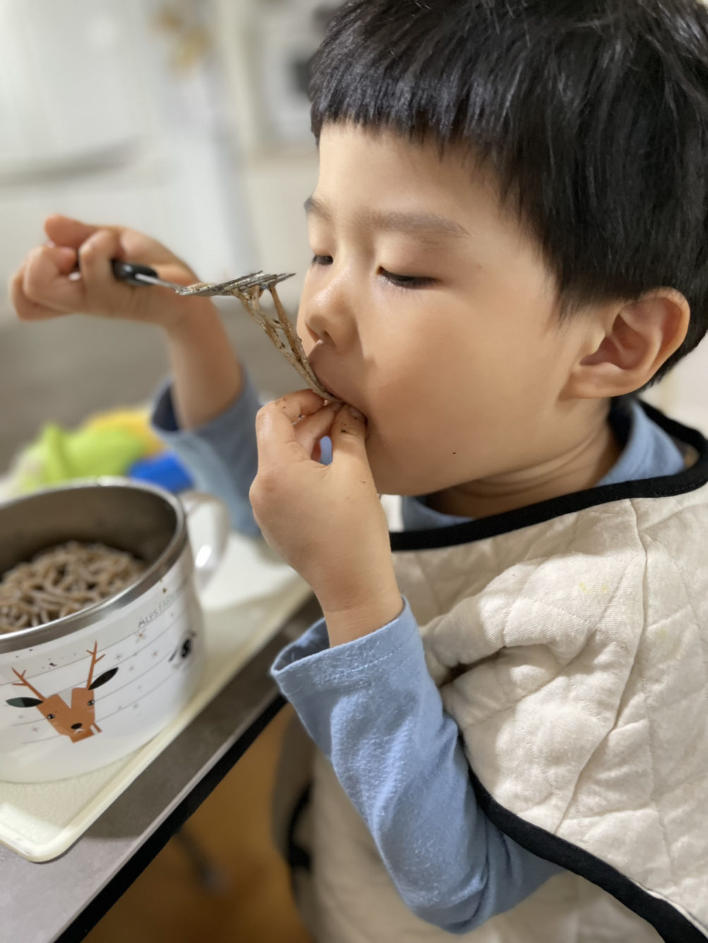 오늘 아침에는 밥을 먹으며 기린이 될 거란다.