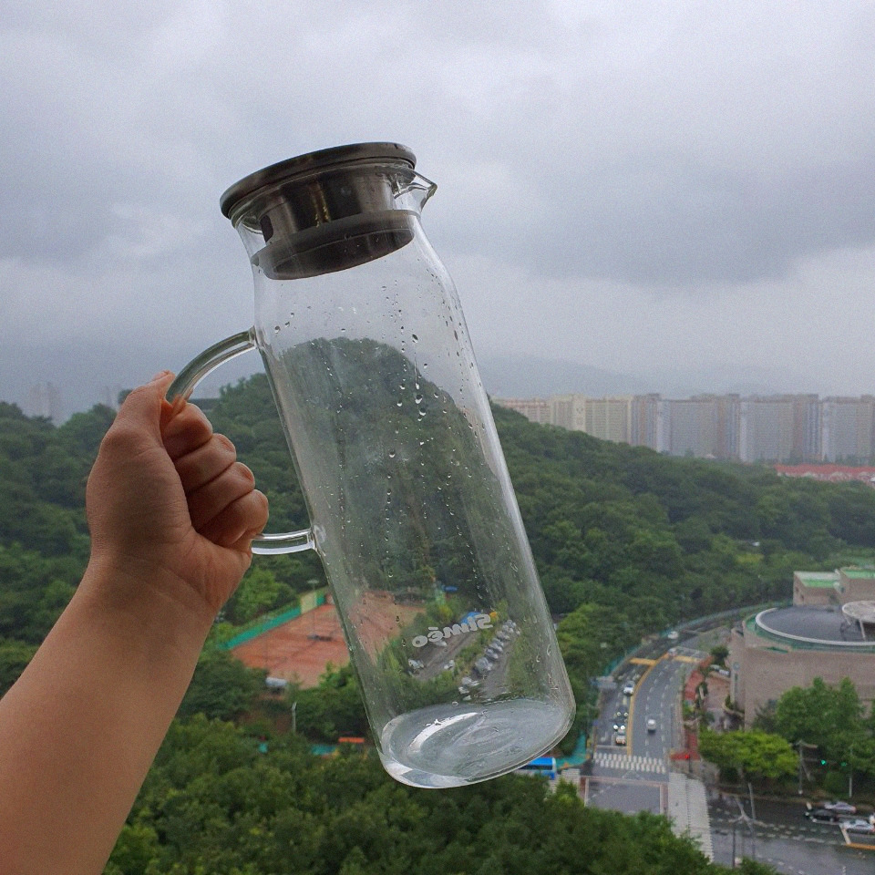 <브리타 정수기 물 1.0리터, 유리병의 물 1.8리터, 정수기 포트 안의 물 약 200밀리, 작은 세숫대야 안의 물 약 500밀리리터.>
