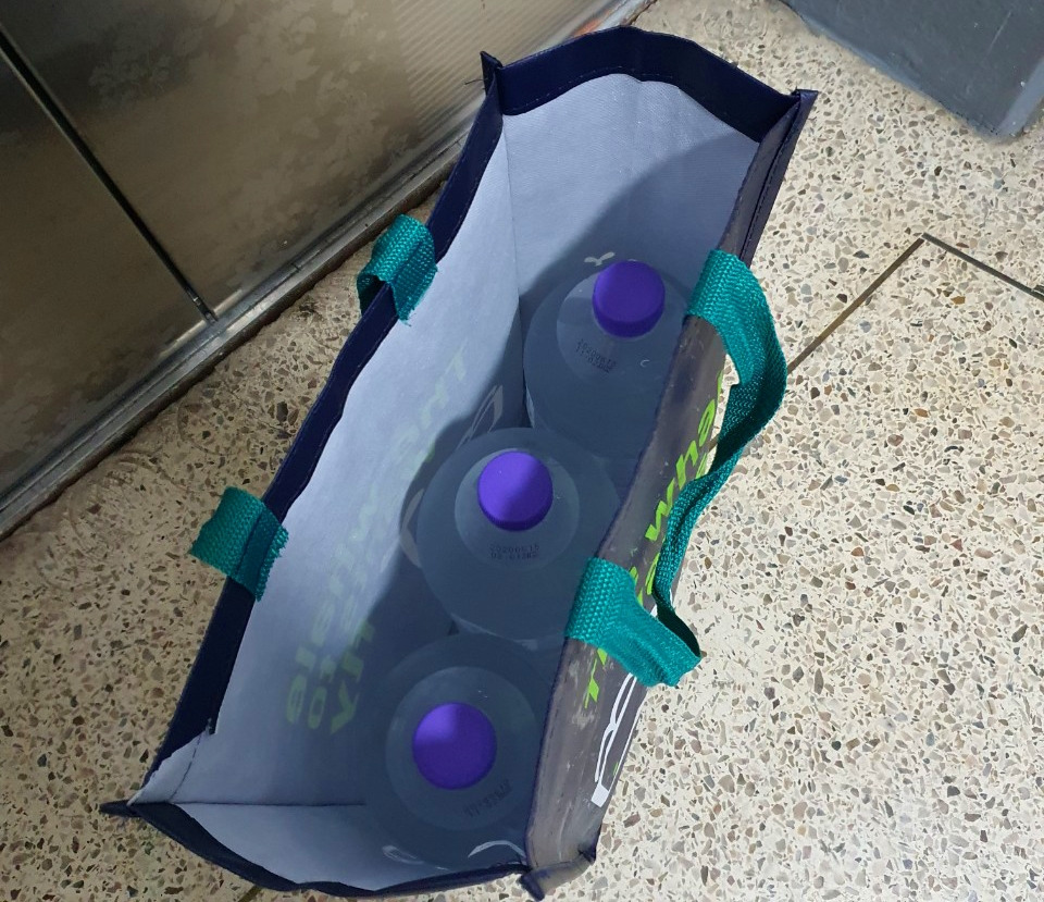 그래서 동생은 출근 전에 2리터 물 세 병을 사서 엘리베이터로 올려보냈고,