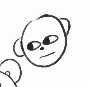 수많은 낙서 중 덩그러니 그려진 얼굴 하나. 여기에서 발전시켜 '원숭이' 캐릭터를 만들기로 했다. 요즘엔 동물 본연의 모습이 아닌 많이 변형시킨 모양새도 작가 본인이 그렇다 하면 그렇게 된다. 예를 들어 '찌오'는 이게 오리인가 싶은데, 오리라고 하니 사람들은 오리라고 받아들인다. 그럼 원숭이도 되지 않을까? 그리고 외향적인 친구들(파워 E)과의 단톡방에서 영혼 없이 리액션하는 나 자신(파워 I)에 대한 생각이 많았다. 스스로 웃기기도 하고, 나 같은 사람이 많을 것 같다는 생각도 들었다.