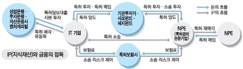 "요즘 부쩍 금융계 큰손들이 특허와 같은 지식재산 투자에 관심을 보이며 특허를 둘러싼 시장이 금융시장과 유사해지고 있고 사모펀드ㆍ헤지펀드 투자 외에도 재간접투자펀드 등 다양한 형태의 투자 활동이 일어나고 있다"