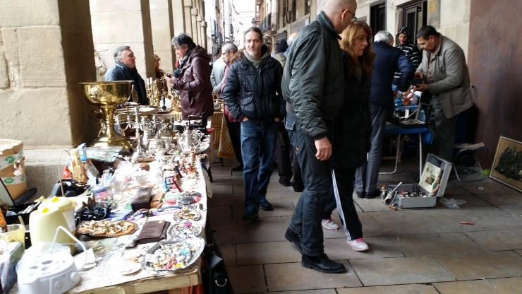 오후 2시. 텅 비었던 광장이 벼룩시장으로 가득 찬다.