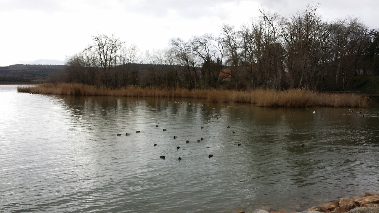 오리 떼가 잔잔한 수면 위를 미끄러지듯 흐른다.