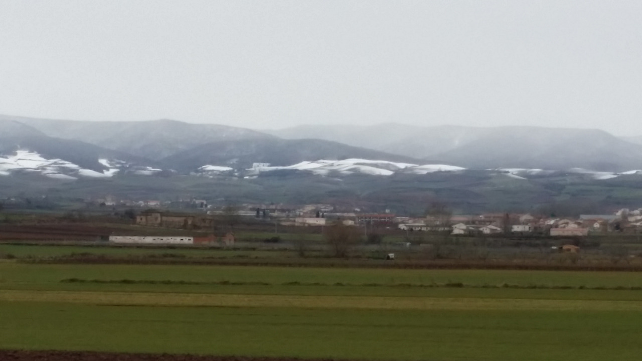 왼편에는 눈 덮인 데만다(Demanda) 산맥,