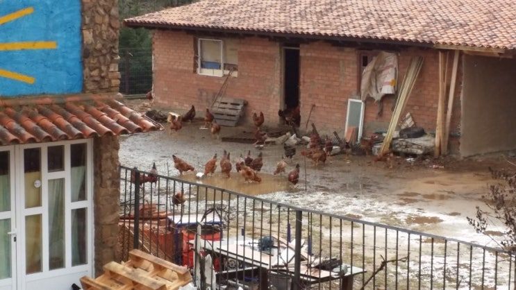 마당엔 닭들이 어슬렁거리고,