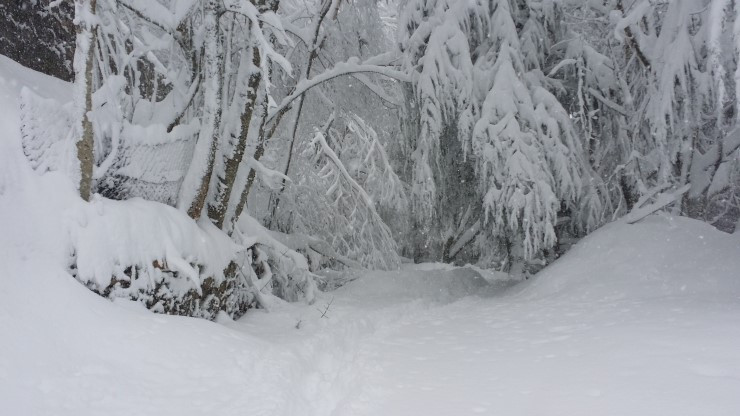 무릎까지 빠지는 눈길을 헤치고