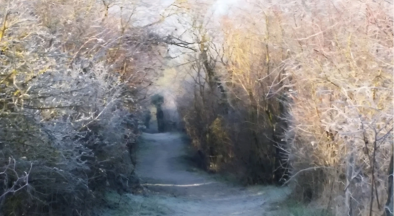 너른 목장을 따라 이어진 그 길에 아침 서리꽃이 내려앉아 말로 표현하기 어려운