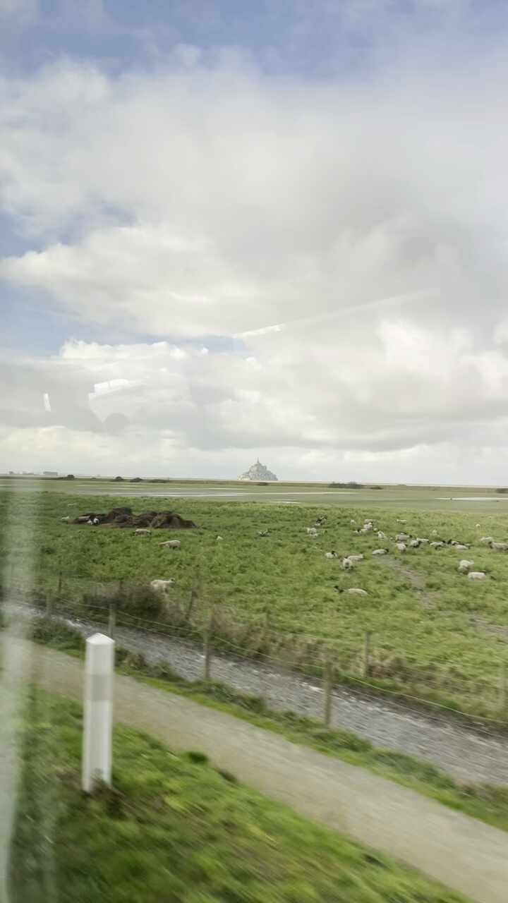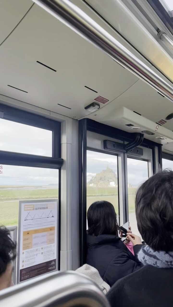 버스에서 몽생미셸 성을 멀리서 딱 보는 순간