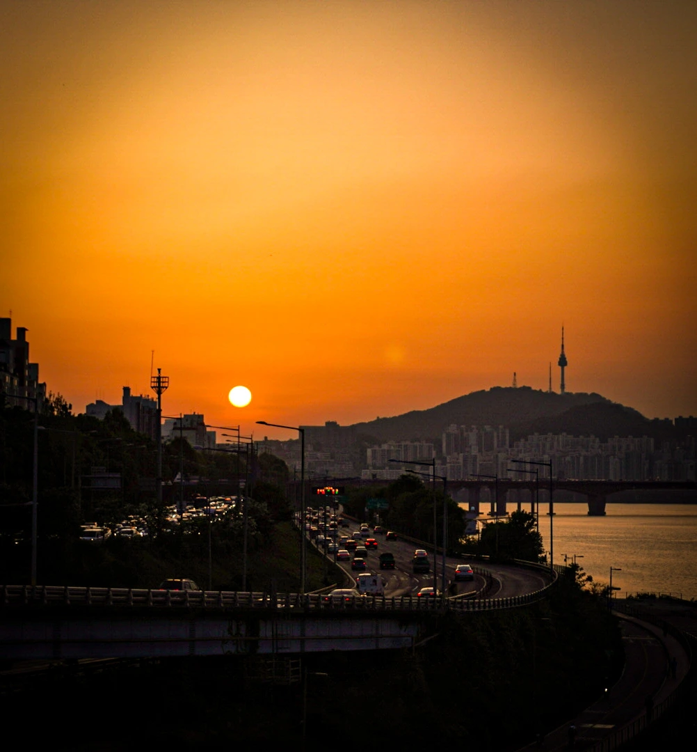 도로에 가득한 퇴근하는 차들, 산 너머로 지는 노을과 남산타워의 어둑한 형상이 낭만적인 풍경을 만들어낸다. 노을이 지는 시간대에 방문을 추천한다.