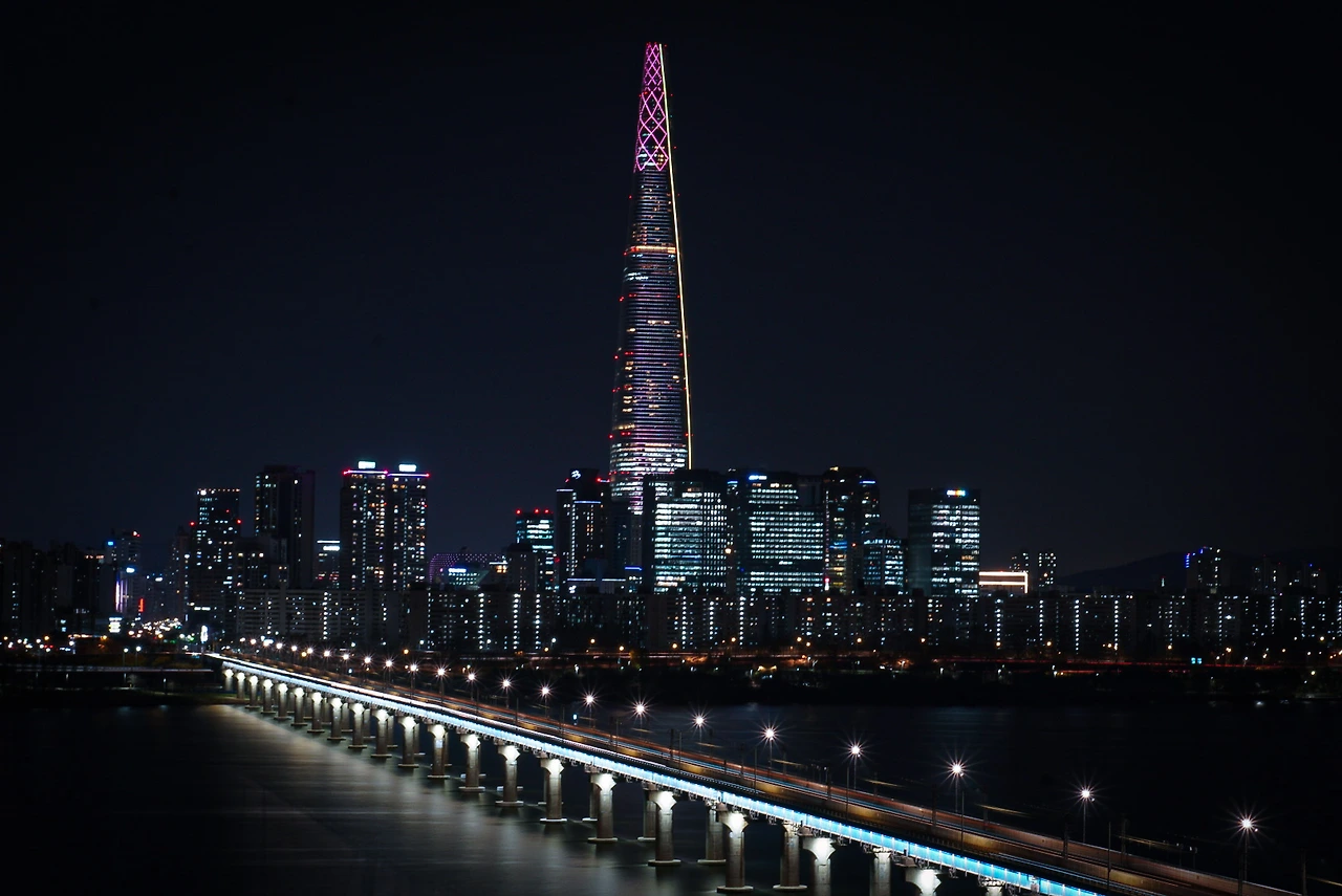 강변역 테크노마트 위에 올라가면 제2롯데타워가 꽤 가까이서 보인다. 주변이 탁 트여있어서 야경 찍기도 좋다.