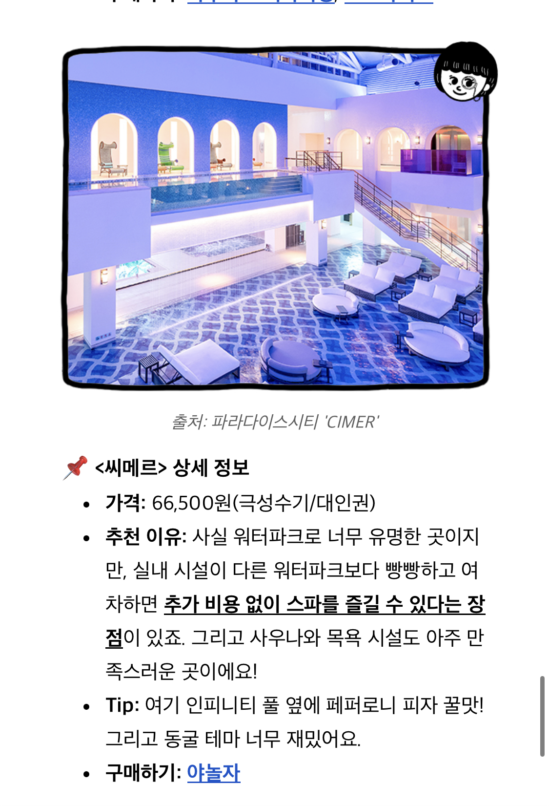 워터파크 + 추가 비용 없는 스파라니, 가보고 싶어졌다. 이런 곳 가면 늘 비싼 거 맛없게 먹는 게 일상이었는데 페퍼로니 피자 꿀맛이라니 +300점.