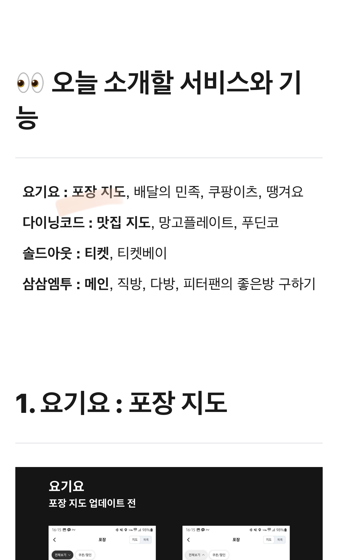 요기요 포장지도, 배달팁에 대한 부담을 배달료 인하 뿐만 아니라 ”포장지도 “ 기능으로 해소한다. 고객이 실질적으로 만족할만한 서비스 업데이트인 듯.