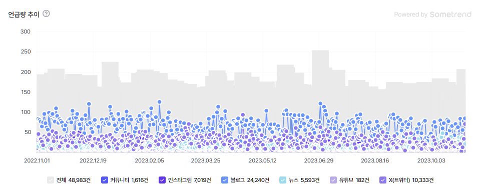 오늘날은 뉴스레터의 홍수 시대라고 봐도 무방할 것 같습니다. 요즘 세대들은 실제 뉴스 기사보다, 볼만한 뉴스거리들이 보기 좋게 클리핑 된 뉴스레터를 선호하는데요. 썸트렌드에서 '뉴스레터' 언급량을 조회해 본 결과, 역시나.. 예상대로 꾸준히 높은 것을 볼 수 있었습니다.