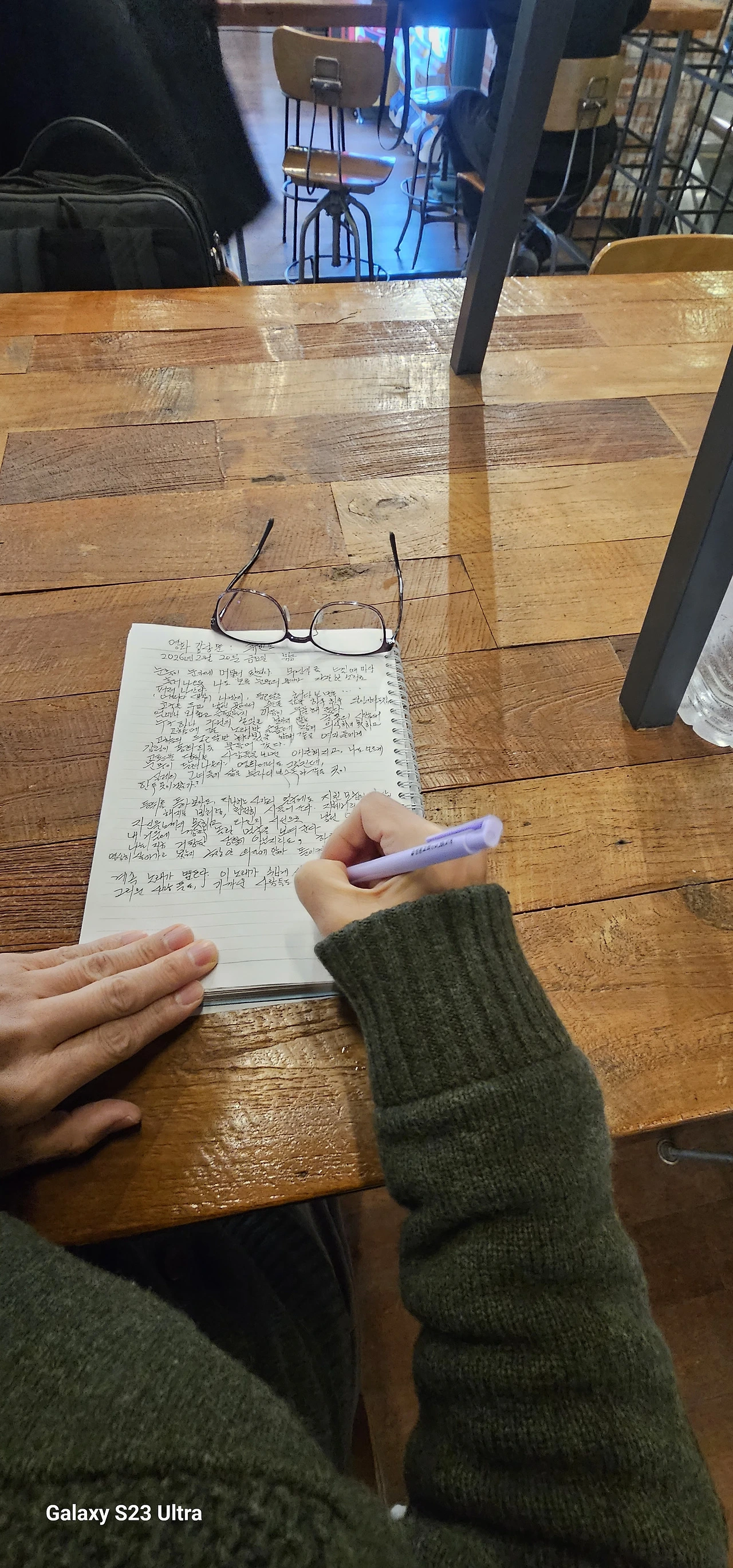 늘 그렇듯이 CGV 휴게실에서 아내가 공책을 꺼낸다.