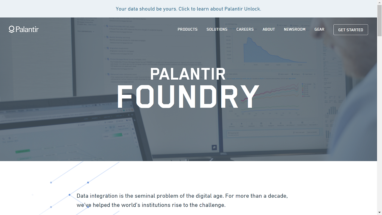 Palantir Technologies는 기관용 소프트웨어 플랫폼으로, 비정부 산업에서 일하는 고객에게 서비스를 제공하는 상업 부문과 미국 연방 정부 및 비 미국 정부의 기관인 고객에게 서비스를 제공한다.