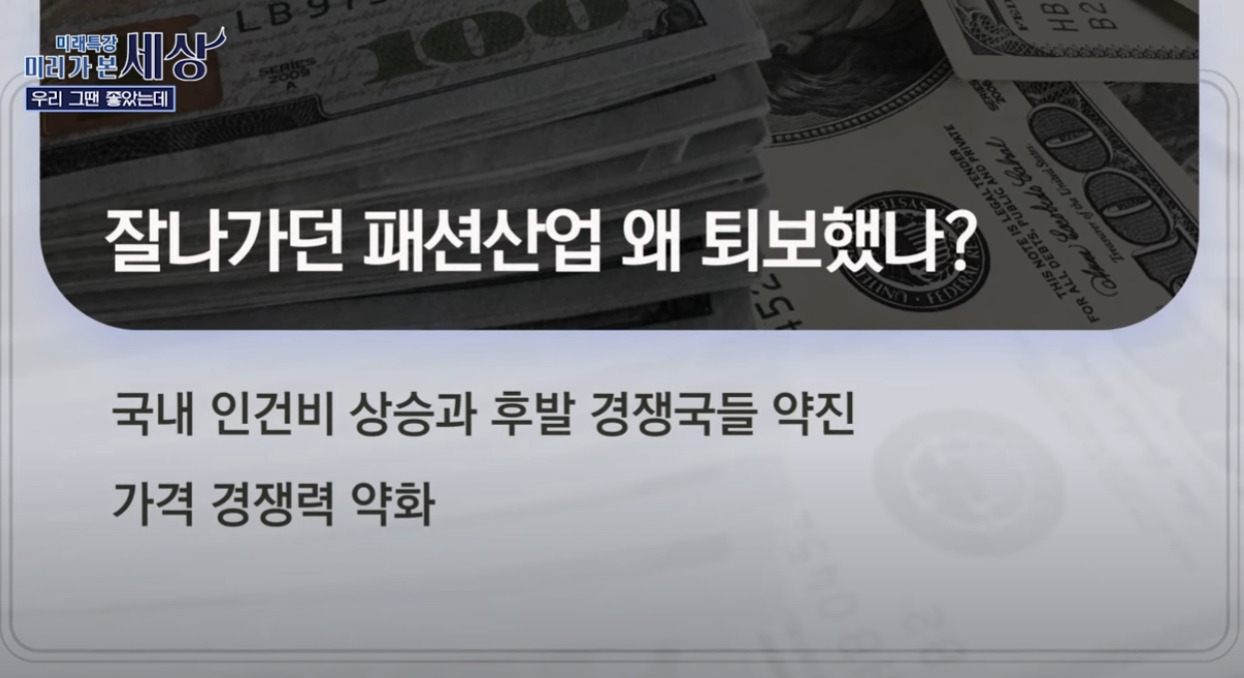 먼저 한국 패션 및 봉제산업이 침체되는 이유에 대해서