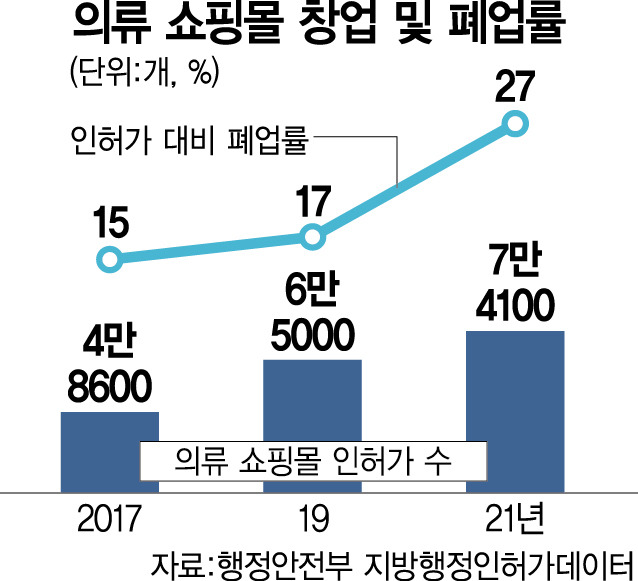 의류 쇼핑몰 창업 및 폐업률, 출처-통계청,행정안전부