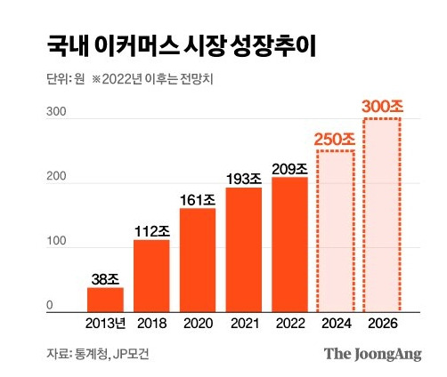 국내 이커머스 성장추이, 출처-통계청 외 언론매체